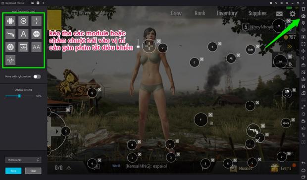 Ngoài ra, bạn có thể dễ dàng tùy chỉnh lại bố cục của các phím tắt điều khiển theo sở thích cá nhân của mình bằng cách nhấn vào biểu tượng bàn phím trên thanh công cụ bên phải giao diện, sau đó kéo - thả các module chức năng tương ứng hoặc chấm chuột trái vào vị trí cần gán phím tắt và lưu lại để áp dụng là xong.