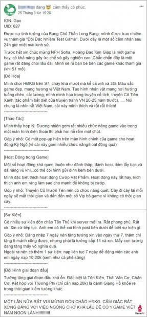 Mặc dù trong đợt Alpha Test lần trước chỉ có một nhóm nhỏ người chơi được tham gia nhưng hầu hết các ý kiến phản hồi đều rất tích cực. Họ đều đồng ý rằng, gameplay của Hoàng Đao Kim Giáp đủ hay để thỏa mãn bất kỳ fan chiến thuật nào. Từ hệ thống tướng, kỹ năng hay các yếu tố trận hình đều được thiết kế hợp lý và liên kết với nhau. “Một khi đã nghiền ngẫm thì khó có thể dứt ra được” – lời nhận xét của anh Đạt Tiến.