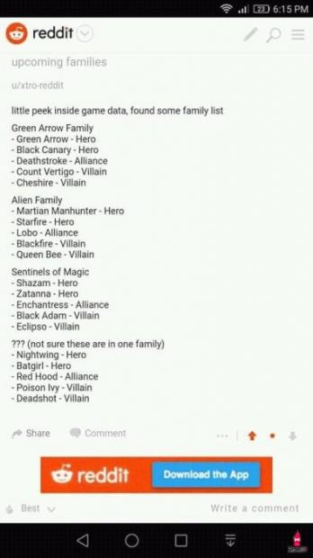 Theo đó, 4 nhóm nhân vật này sẽ có thể là 4 family tương ứng 20 nhân vật mới. Đó chính là Green Arrow Family, Alien Family, Sentinels Of Magic và 5 nhân vật lẻ chưa xác định rõ nhóm.