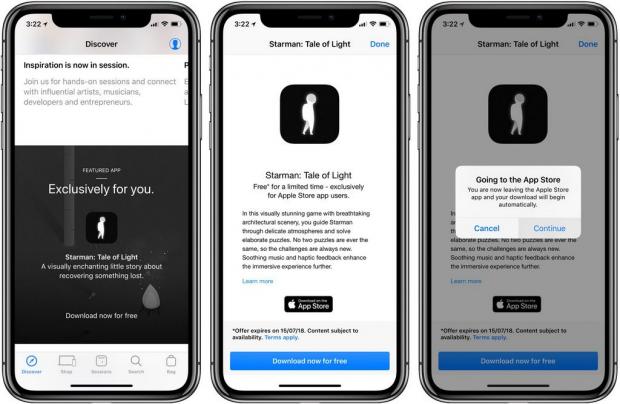 Tại đây, bạn sẽ được yêu cầu xác nhận để nhận quà, vì thế hãy bấm vào nút Continue. Chọn Redeem ở phía trên bên trái màn hình và đăng nhập bằng tài khoản Apple ID nếu hệ thống yêu cầu. Một khi bạn thấy được dòng thông báo nhận game thành công thì hãy bấm Done. Hoàn tất bước này là bạn đã có thể sở hữu được Starman một cách hoàn toàn miễn phí rồi đấy.