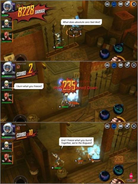 Và chuyện gì sẽ xảy ra nếu như bạn thêm The Flash vào đội hình đã có sẵn Captain Cold và Heat Wave? Hiển nhiên các nhân vật này giờ đang ở cùng một chiến tuyến chống lại kẻ địch, The Flash cũng được dịp khuyên nhủ hai kẻ thù chính tuyến của mình: “Tại sao các người không sử dụng sức mạnh của mình vào việc tốt ? Hai người xứng đáng được nhiều hơn như thế này”. Captain Cold nhanh chóng đáp lại: “Rời bỏ the Rogues và nhận một công việc văn phòng ? Đúng là phí hoài một cuộc đời anh bạn The Flash ạ”