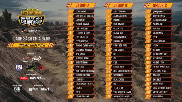Vào ngày 11/05/2018, ASUS Republic of Gamers, PUBG Corp và 23Creative chính thức công bố bảng thi đấu giải PUBG Đông Nam Á vòng loại Việt Nam.