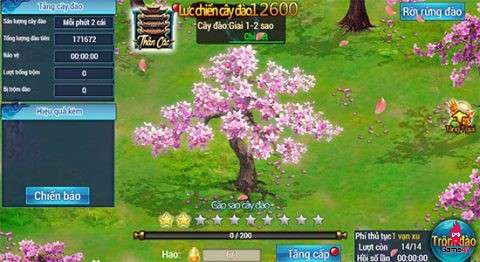 Rừng Đào giúp tăng lực chiến của mỗi người, vì vậy bạn phải thường xuyên chôn những vò rượu tiên hay còn gọi là Tiên Lộ xuống để nâng cấp. Mỗi phút, cây đào của bạn sẽ có lượng Quả đào thu hoạch nhất định. Trong trường hợp chăm sóc quá khó khăn, bạn có thể chuyển sang “ăn trộm”.