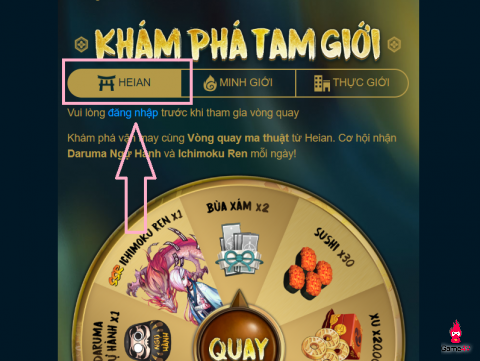 Vậy game thủ Việt cần làm gì để tham gia chương trình. Đầu tiên hãy truy cập vào địa chỉ sau, kéo xuống dưới, trong Tab Heian hãy đăng nhập vào tài khoản Garena/Facebook có liên kết với tựa game. Bạn sẽ nhận được một lượt quay miễn phí (Mời thêm bạn bè để nhận được thêm 1 lượt quay nữa nhé)