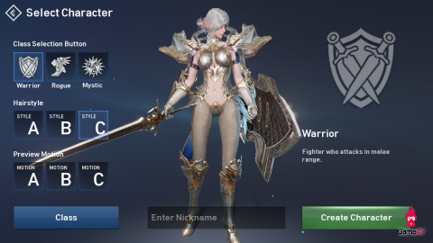 Với 3 nghề cơ bản: Chiến Binh, Lãng Khách, Thuật Sĩ, trò chơi cho phép game thủ chuyển đổi qua lại linh hoạt giữa hai nhánh phát triển nhân vật tương đương với loại vũ khí, giáp trụ đặc trưng.