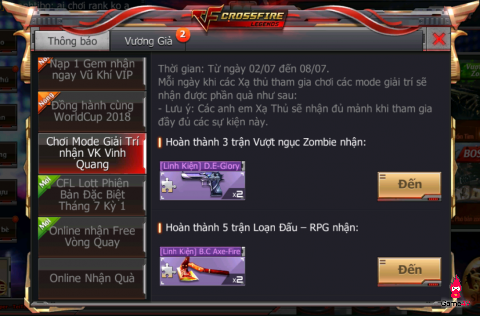 - Hoàn thành 3 trận Vương Ngục Zombie: nhận 2 mảnh D.E Glory