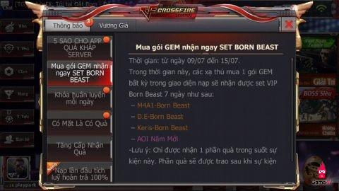 Mùa bóng kết thúc, nhanh chóng triệu tập (11/7 – 15/7): Áp dụng cho game thủ đã không vào game >30 ngày từ ngày 9/6 trở về trước. Phần thưởng sẽ được gửi qua thư trong game, khi xạ thủ đăng nhập lại mở thư nhận quà. Phần thưởng hấp dẫn gồm: