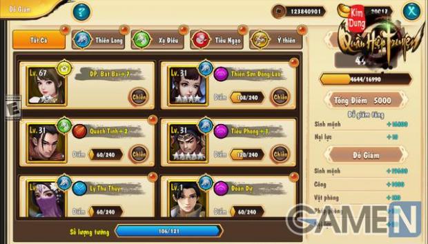 Hiếm có tựa game thẻ tướng kiếm hiệp nào đem đến hệ thống tướng đông đảo và được đầu tư kỹ lưỡng đến vậy. Hơn 100 các vị tướng khác nhau đến từ 5 bộ tiểu thuyết lớn của nhà văn Kim Dung đều được chăm chút tỉ mỉ và mang những đặc trưng, thần thái của riêng mình.