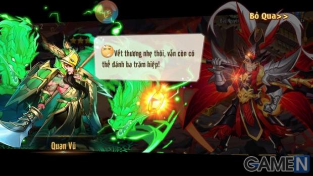 Bước vào trò chơi, bạn sẽ được dẫn dắt về thời kỳ Đông Hán - Tam quốc phân tranh với hai sự lựa chọn nhân vật Nam hoặc Nữ. Sự lựa chọn này về cơ bản không ảnh hưởng quá nhiều đến kết quả sau này, bởi hỗ trợ cho nhân vật chính là 5 danh tướng mà bạn có thể xuất trận về sau. Điểm đáng chú ý là bạn sẽ không thể chiêu mộ danh tướng cấp Tím-Cam trở lên cho đến khi đạt được level 45. Đây là một hạn chế cần thiết để bạn không cảm thấy quá nhàm chán và dễ đánh.
