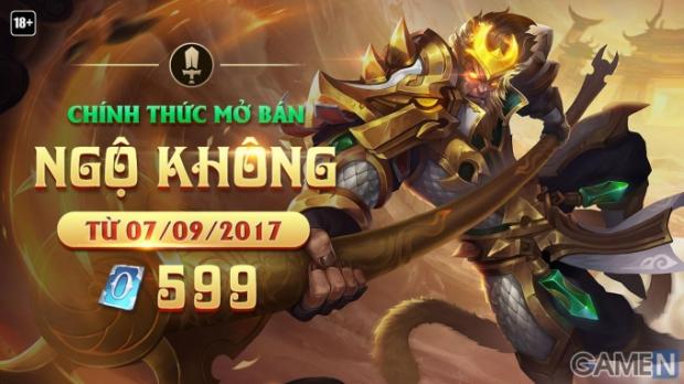 Kể từ ngày 07/09/2017, Ngộ Không sẽ được bán ra. Trong 2 tuần đầu tiên, Ngộ Không sẽ chỉ có thể mua bằng Quân Huy. Bắt đầu từ tuần thứ 3 kể từ ngày mở bán, các bạn mới có thể sở hữu Ngộ Không với giá 25888 Vàng.