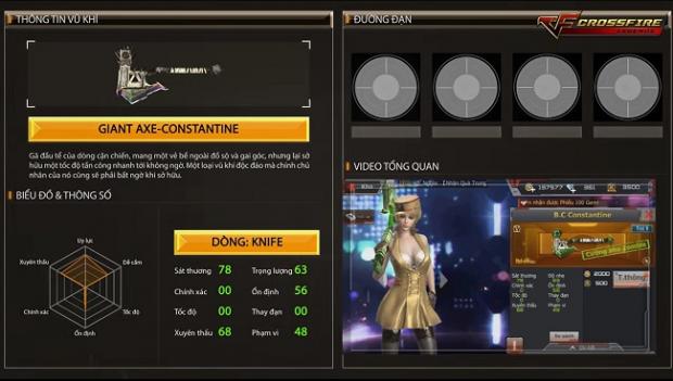Giant Axe-Constantine là vũ khí VIP mới của Crossfire Legends vì vậy không phải ai cũng hiểu rõ về sức mạnh của con quái vật này. Hôm nay chúng ta cùng tìm hiểu sức mạnh đáng sợ của nó nhé. Về bề ngoài thì Giant Axe-Constantine sở hữu một ngoại hình hầm hố, đồ sộ với những chi tiết sắt nhọn trông cực kỳ nguy hiểm. Với bề ngoài như vậy chắc chắn ai cũng nghĩ đây là một vũ khí cận chiến có sát thương cực lớn nhưng tốc độ lại chậm. Hãy thử so sánh nó với Katana-Transformer xem sao.