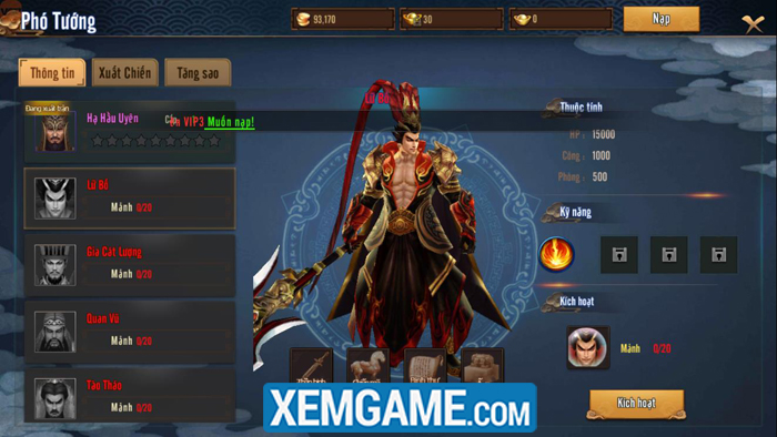 Sau khi cày kéo đến cấp độ nhất định, bạn còn có thể chiêu mộ cho mình một phó tướng để giúp đỡ trong quá chiến đấu với kẻ thù. Hệ thống phó tướng giới thiệu cho chúng ta những vị tướng mạnh mẽ và nổ tiếng nhất thời Tam Quốc từ Lã Bố cho đến Hạ Hầu Uyên…. và bạn hoàn toàn có thể chiêu mộ họ về đội của mình khi có đủ mảnh tướng hay đơn giản hơn là…. nạp thẻ. Lưu ý rằng tuy bạn không thể điều khiển phó tướng này sự giúp ích của họ trên chiến trường là không thể bàn cãi, thậm chí bạn còn có thể nâng cấp, ép chiến lực cho họ lên nữa cho giai đoạn về sau.