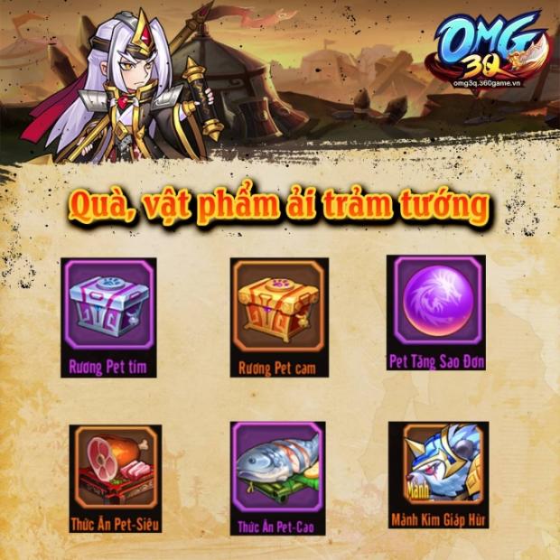 Vượt Ải Trảm Tướng là hoạt động mới nhất, vừa được khai mở trong bản cập nhật của OMG 3Q vào ngày 12/10. Đây là hoạt động liên kết mật thiết với hệ thống pet trong game. Phần thưởng của hoạt động này chính là tinh hoa pet, thức ăn pet và các rương vật phẩm quý.