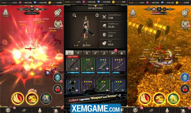 Theo đó vẫn là công thức quen thuộc có thể gói gọn trong vài từ tóm tắt sau đây : đánh quái, đánh boss, nhận tiền, lặp lại từ đầu… Bạn phải phát triển nhân vật của mình mãi mãi trong khi lũ quái vật cứ ùa ra xung quanh bạn. Có thể nói đây là game luyện tay tốt nhất khi bạn cứ phải ghì tay mình trên hệ thống phím ảo của game để bay nhãy giữa vòng vây quân thù.
