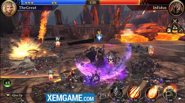 Bên cạnh việc xây dựng vương quốc, người chơi còn được chiêm ngưỡng những trận chiến đầy khốc liệt thông qua góc nhìn 3D Top-Down xoay chuyển khá linh hoạt, mang đến những trải nghiệm vô cùng chân thực và đẹp mắt, đi kèm là những hiệu ứng kỹ năng cùng hiệu ứng tương tác khi quân lính tử trận hay chiến thắng. Vì có cả yếu tố RPG cho nên người chơi còn có thể huấn luyện cho những vị tướng mà họ sở hữu, trang bị vũ khí, học và nâng cấp kỹ năng để gia tăng khả năng tấn cũng như phòng ngự.