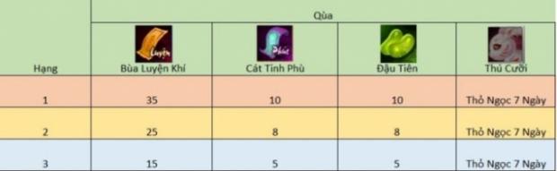 Theo đó, trong hai ngày 18/10 và 19/10 tổ chức Bang chiến, các Bang hội tham gia thi đấu và góp mặt trong BXH sẽ nhận được rất nhiều phần quà vô cùng hấp dẫn. Đặc biệt, những vật phẩm như bùa luyện khí, cát tinh phù, đậu tiên và thú cưỡi Thỏ ngọc (7 ngày)... sẽ được trao tận tay các thành viên của Bang hội đoạt giải.