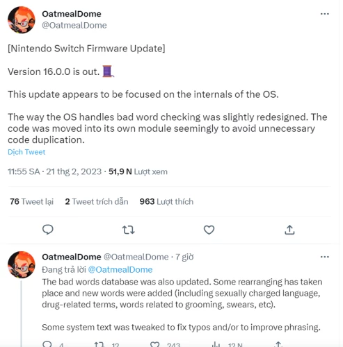 Ghi chú bản vá Nintendo Switch 16.0.0:
