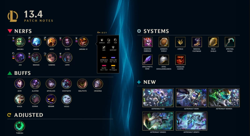 Trình khởi chạy đã sẵn sàng. Tên lửa sẵn sàng. Kiểm tra. Khởi động. Kiểm tra. Sinh vật biển mình trơn và Yordle sốc điện. Kiểm tra? BẢN CẬP NHẬT 13.4 ĐÃ SẴN SÀNG RA MẮT!