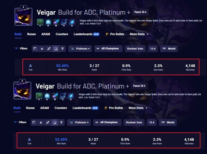 Bản cập nhật LMHT 13.4 vừa qua, Riot Games đã tăng nhẹ sức mạnh cho Bậc Thầy Tiểu Quỷ – Veigar. Chính bởi, tỷ lệ thắng của Veigar ở 2 bản cập nhật gần nhất (LMHT 13.1 và LMHT 13.3) thấp thê thảm chỉ khoảng 47-48% (theo u.gg) và chỉ được đánh giá sức mạnh ở mức B-D.