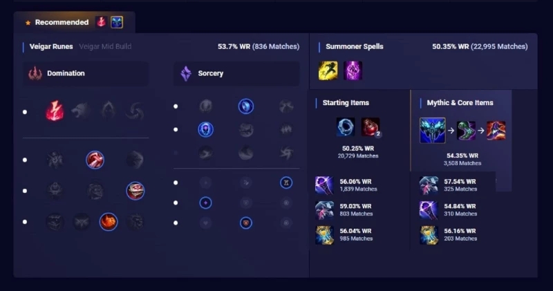 Được biết, sau khi Riot Games tăng tầm đánh cho Veigar, vị tướng này không những dần comeback ở vị trí đường giữa mà còn được mang xuống đường dưới ở vị trí Xạ thủ. Thậm chí, Veigar ở đường dưới còn có tỷ lệ thắng cao lên đến trên 53% hơn hẳn so với Veigar ở đường giữa với chỉ khoảng 50% (tỷ lệ thắng được ghi nhận vào thời điểm viết bài).Ở khu vực đường giữa, Veigar có khả năng đối đầu tốt với những vị tướng như Azir, Swain, Irelia hay Vex. Trong khi đó, ở đường dưới, Bậc Thầy Tiểu Quỷ có tỷ lệ thắng cao khi đối đầu với Aphelios, Lucian, Zeri hay Kai’sa.