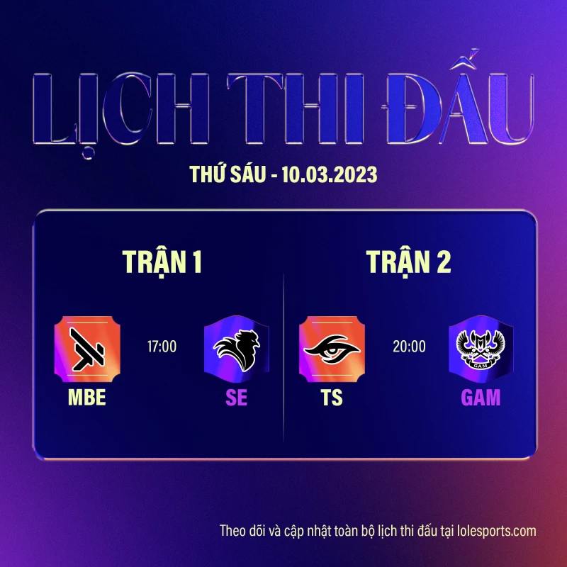 Liên Minh Huyền Thoại: MBE vs SE, TS vs GAM LỊCH THI ĐẤU NGÀY 2 TUẦN 3 VCS 2023 HỪNG ĐÔNG