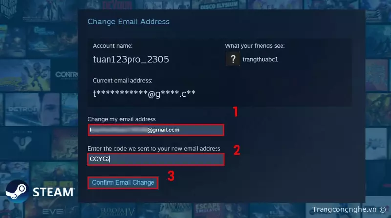 Sau khi hoàn thành các bước này, Steam sẽ gửi một email xác nhận đến địa chỉ email mới của bạn để xác nhận thay đổi. Bạn cần làm theo hướng dẫn trong email để hoàn tất quá trình đổi email.