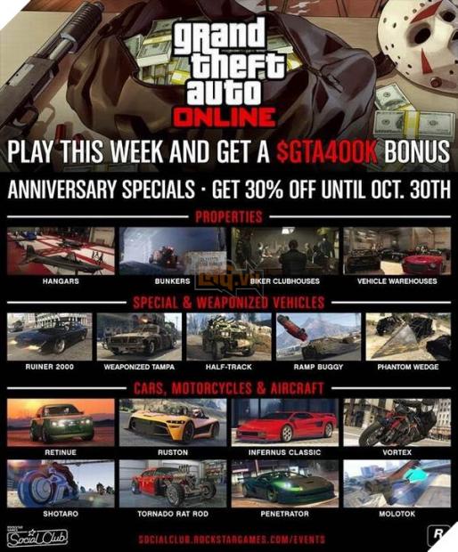 Nhằm kỉ niệm 4 năm ra mắt tựa game GTA V, hãng Rockstar đã mang vào GTA Online nhiều hoạt động thú vị cùng với nhiều chương trình giảm giá