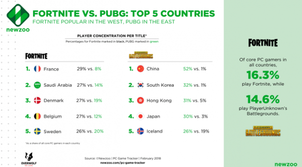 Lượng người chơi PUBG tại các nước châu Á vẫn lớn hơn Fornite rất nhiều, đặc biệt tại Trung Quốc, đất nước đông dân nhất thế giới. Thế nhưng vẫn không đủ để giữ mình trên đỉnh phong độ, trong khi Fornite được các nước phương Tây ưa chuộng hơn, và vượt qua PUBG về số lượng người chơi.