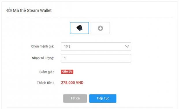 Giá bán thẻ Steam Wallet trên một ví điện tử