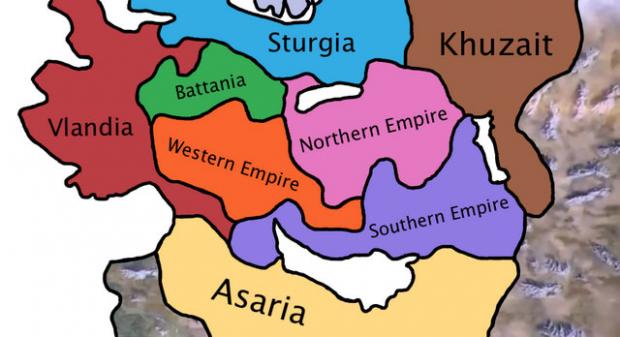 Bản đồ mô phỏng vị trí các quốc gia của vùng Calradia trong Mount&Blade II