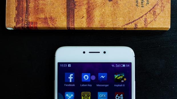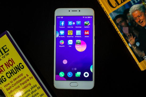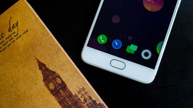 Mặt trước của máy được bảo vệ bởi một tấm kính cường lực cong 2.5D, đây cũng cách làm phổ biến của các hãng điện thoại khác. Nút home kiêm cảm biến vân tay, được mạ kim loại sáng loáng xung quanh, là điểm nhấn cho toàn bộ mặt trước. Tuy nhiên, cảm biến vân tay có trên Meizu M3 Note, không phải là loại một chạm mở khóa, mà bạn phải bật sáng màn hình mới có thể thực hiện quét vân tay được.