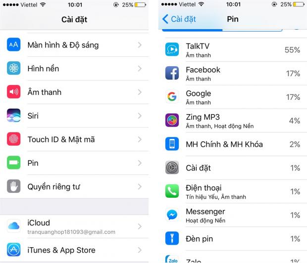 Nguyên nhân gây tốn pin thường liên quan đến những ứng dụng bạn sử dụng hằng ngày. Để kiểm tra mức tiêu hao năng lượng của từng ứng dụng bạn thao tác như sau: