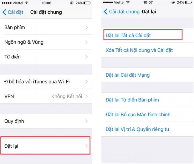 7. Cài đặt lại tất cả các thiết lập