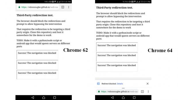 Chức năng này sẽ ngăn chặn các trang web tự mở ra một liên kết trong tab mới trong khi hiển thị quảng cáo hoặc nội dung không mong muốn khác trên tab hiện tại. Google sẽ tung ra tính năng này cho Chrome 64 vào tháng 1, tuy nhiên người dùng chạy Chrome 62 trở lên có thể sử dụng tính năng này với một chút cài đặt trong trang flags của Chrome.