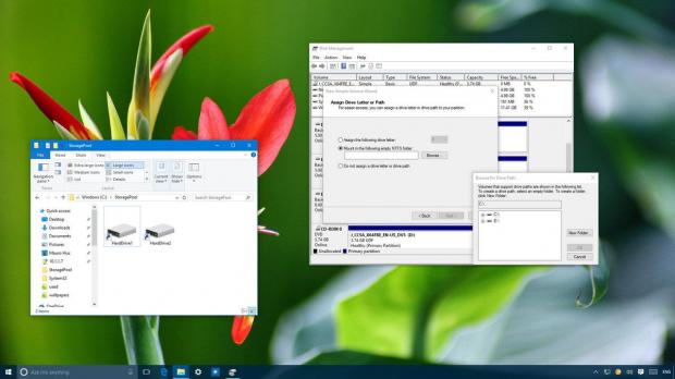 Thay vì sử dụng RAID hoặc sử dụng các phương pháp để nhóm các ổ đĩa logic, trên Windows 10 bạn có thể sử dụng tính năng cho phép bạn gán đường dẫn thư mục mount-point vào một ổ đĩa cứng, và xuất hiện như một thư mục trên máy tính thay vì sử dụng kí tự ổ đĩa.