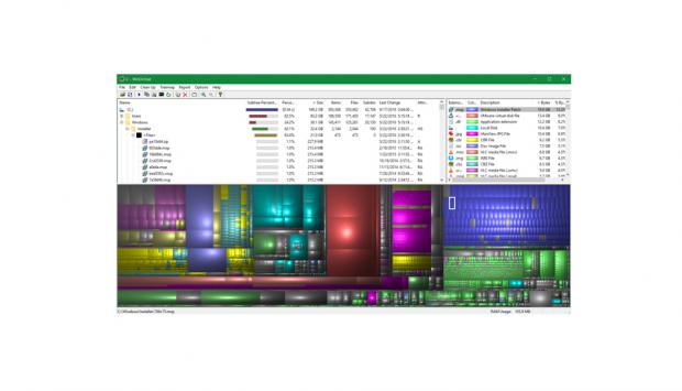 WinDirStat với giao diện trực quan giúp hiển thị các dữ liệu được lưu trữ trên một ổ đĩa. Trong đó, các hình vuông và hình chữ nhật có màu sắc khác nhau sẽ đại diện cho các khối dữ liệu, những màu sắc khác sẽ phản ánh các loại kiểu tập tin. Các hình khối cành lớn, tức lượng dữ liệu chiếm dụng bên trong sẽ lớn. Người dùng cũng nên chú ý khi tiến hành xóa file, để xóa một tập tin, click chuột phải vào nó và chọn Delete từ menu ngữ cảnh.