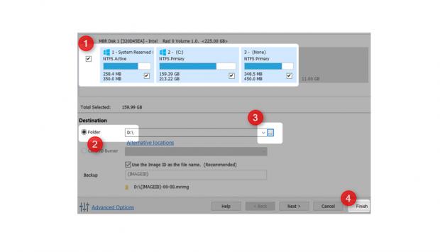 Cuối cùng, chọn Finish để bắt đầu quá trình sao lưu.