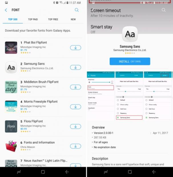 Ngoài 5 font chữ mà Samsung đã chuẩn bị sẵn cho người dùng trên Galaxy Note 8 thì bên cạnh đó người dùng cũng có thể tải thêm hàng trăm font chữ khác để có nhiều sự lựa chọn đa dạng hơn.