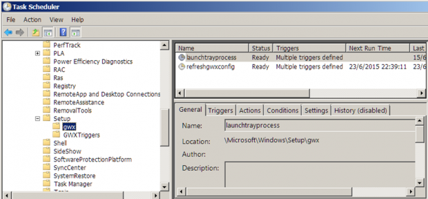2. Trên cửa sổ Task Scheduler, tại danh sách các mục ở khung bên trái, bạn mở rộng Task Scheduler Library => Microsoft => Windows =>Setup =>gwx.
