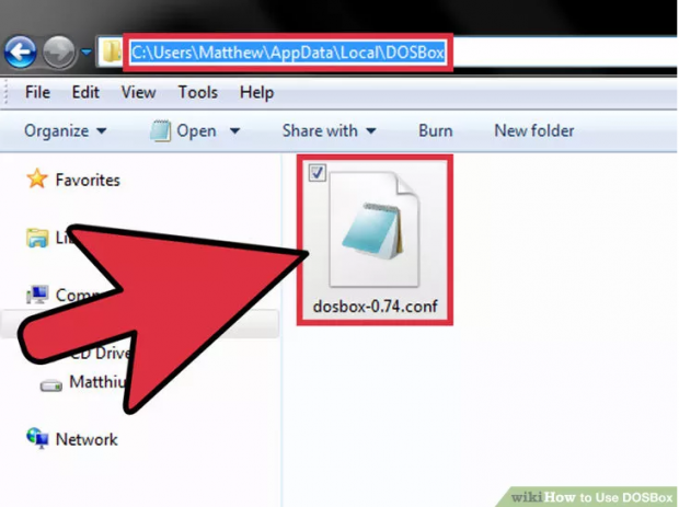 Bạn có thể thiết lập DOSBox tự động kết hợp ổ đĩa bạn đã chọn để tiết kiệm thời gian. Để làm được điều này, bạn phải mở file dosbox.conf ra Notepad.