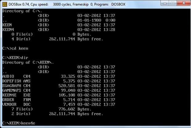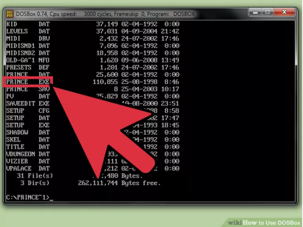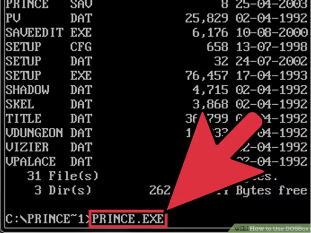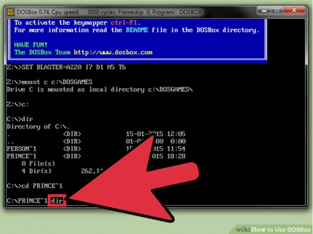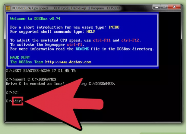 Nếu bạn kết hợp thư mục DOSGAME, mỗi game sẽ chứa các thư mục riêng. Nhập dir để hiển thị danh sách các thư mục game.