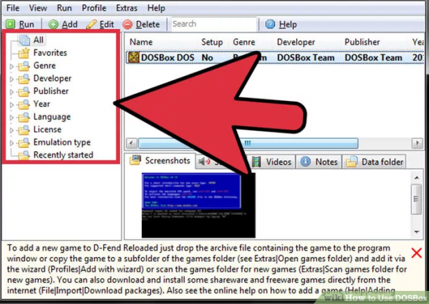Sau khi cài đặt xong D-Fend Reloaded bạn có thể chạy D-Fend Reloaded để quản lý các game. Các game bạn cài đặt sẽ được hiển thị ở khung bên trái.