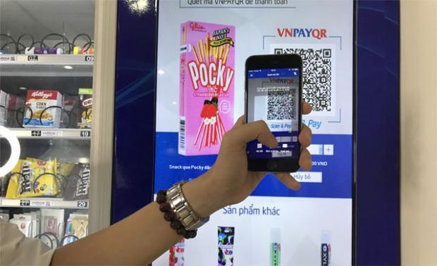 Bước 1: Khi mua sản phẩm, người dùng đăng nhập ứng dụng Mobe Banking của các ngân hàng BIDV, VietinBank, Agribank, Vietcombank, ABBANK, IVB, SCB. Sau đó, chọn tính năng QR Pay, rồi quét mã VNPAYQR tương ứng trên màn hình.