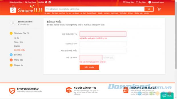 Bước 5: Mục cuối cùng là Đổi mật khẩu, bạn nên thay đổi mật khẩu thường xuyên để việc bảo mật tài khoản của bạn tốt hơn.