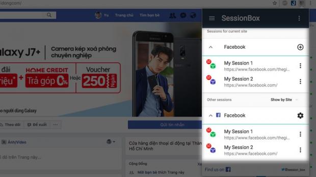 Từ các trình duyệt Chrome, Cốc cốc, Opera,... hãy tải tiện ích SessionBox tại đây. SessionBox cho phép bất kỳ ai có thể sử dụng đồng thời nhiều tài khoản cùng một trình duyệt, trên cùng một thiết bị của họ.