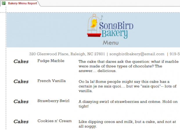 Access sẽ tạo báo cáo mới dựa trên đối tượng bạn chọn. Một phần dữ liệu có thể nằm ở phía bên kia của trang, hãy thay đổi chiều rộng các cột trong báo cáo để chúng nằm trên một trang.