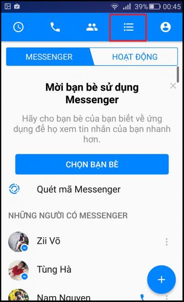 - Bước 1: Bạn mở ứng dụng Messenger trên iOS hoặc Android, sau đó chọn vào tab Danh sách.
