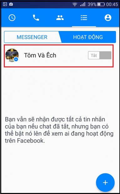 + Tắt trò chuyện với tất cả bạn bè.