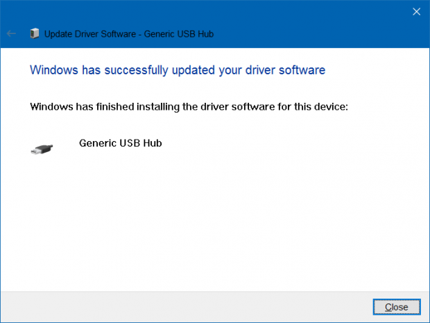 Chờ cho đến khi trên màn hình xuất hiện thông báo “Windows has successfully updated your driver software”.