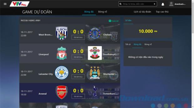Bước 7: Ở mục Game dự đoán sẽ cho phép bạn dự đoán tỉ số giữa các trận đấu bóng đá hoặc bóng rổ bằng tiền xu, bạn có thể chọn ngày và mục chương trình dự đoán để bắt đầu dự đoán.